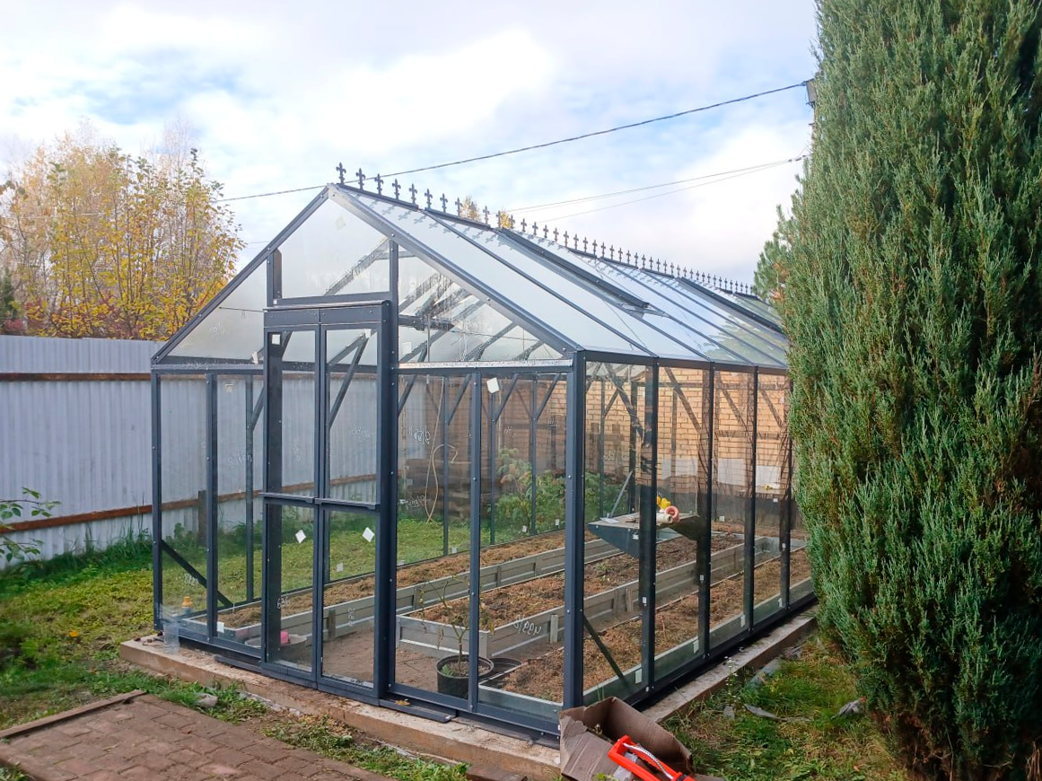 Закалённое стекло (доступно как опция в калькуляторе) особенно актуально при круглогодичном использовании теплицы или в регионах с высокой снеговой нагрузкой.